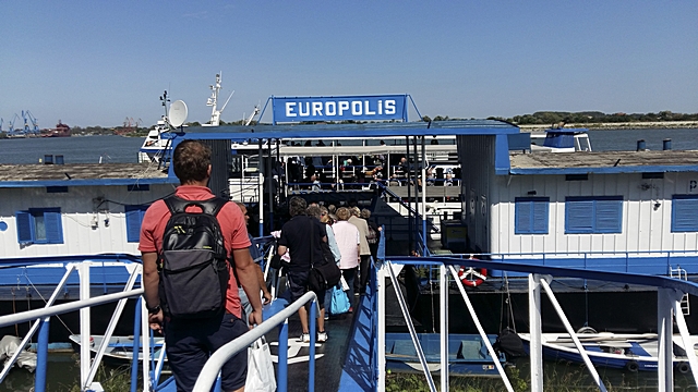Wir gehen an Bord des Donau-Delta-Schiffes in Tulcea |