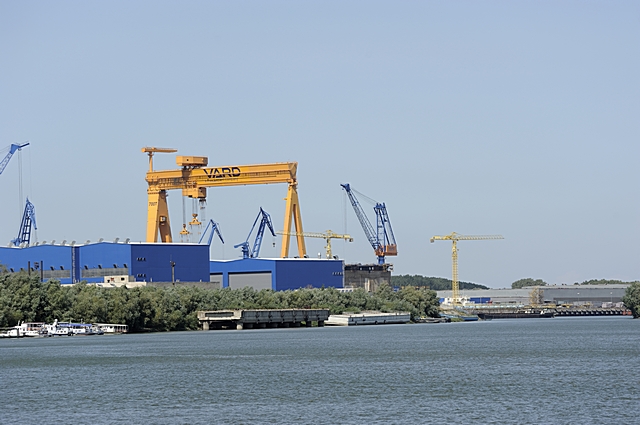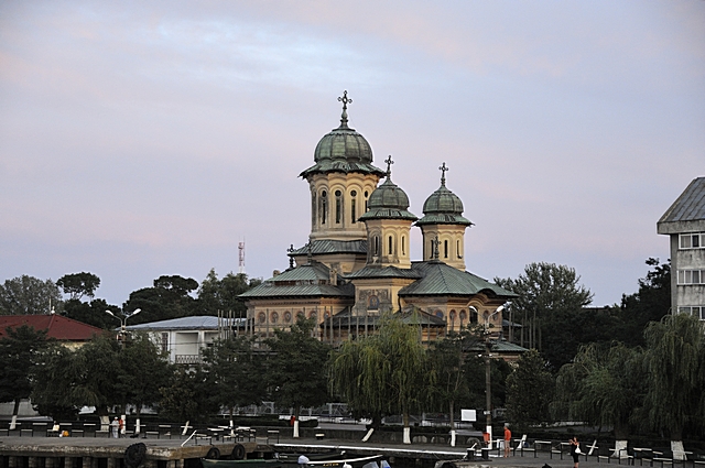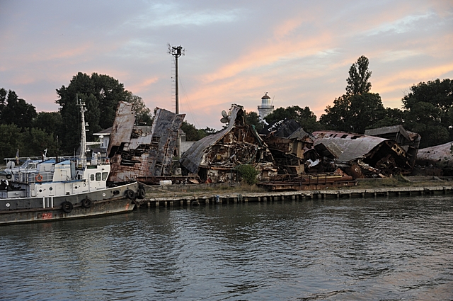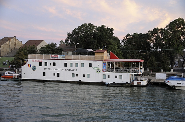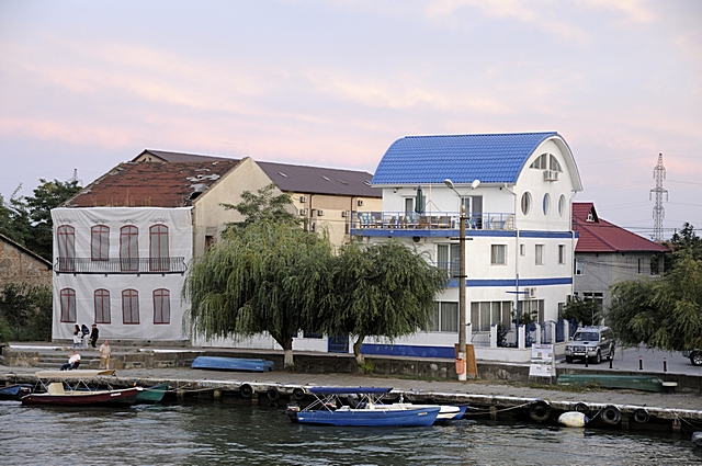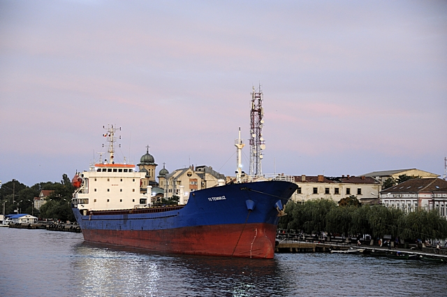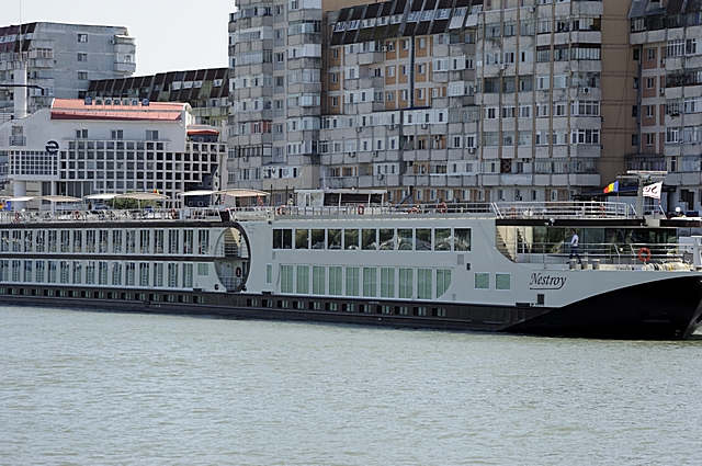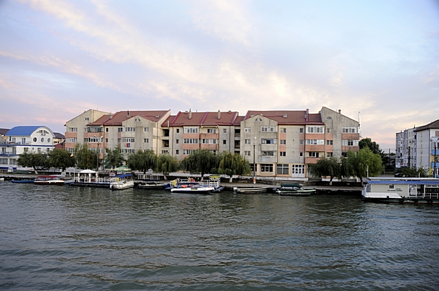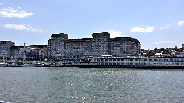 Plattenbauten und Kreuzfahrtschiffe in Tulcea |