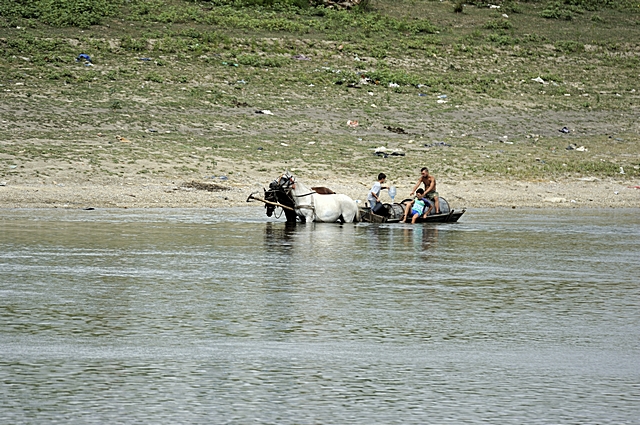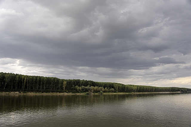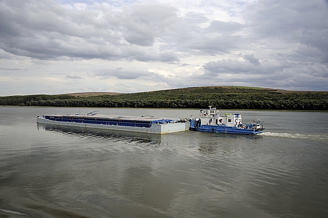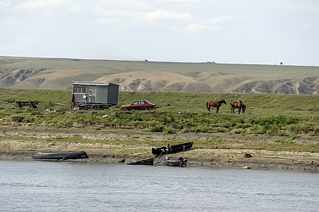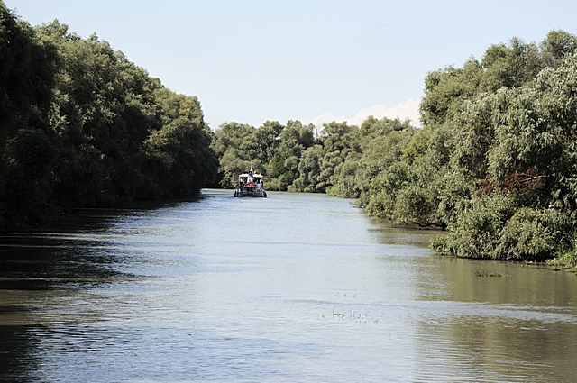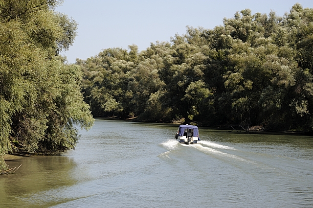 Fahrt auf der Donau in Rumänien zwischen den Orten Giurgeni und Vadu Oii |