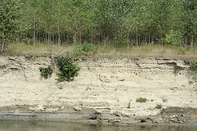 Bruthöhlen der Bienenfresser an der sandig lehmigen steilen Uferböschung der Donau |