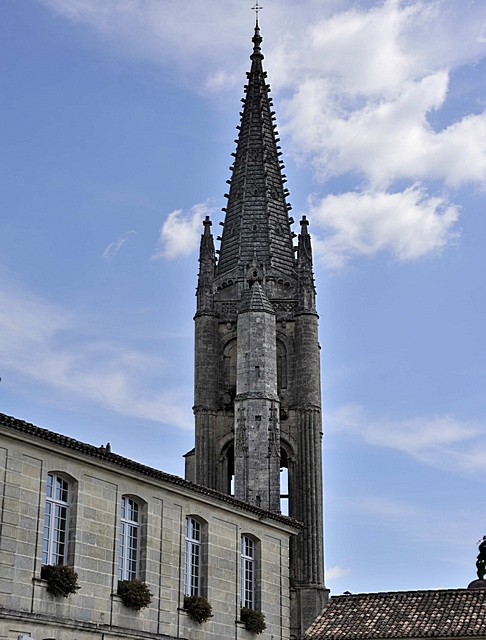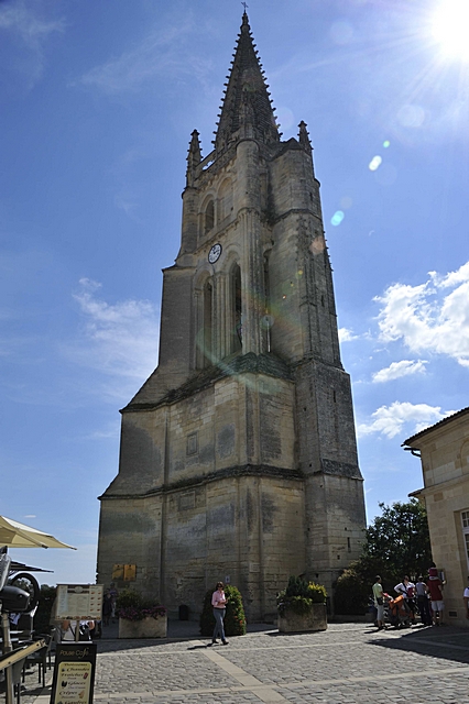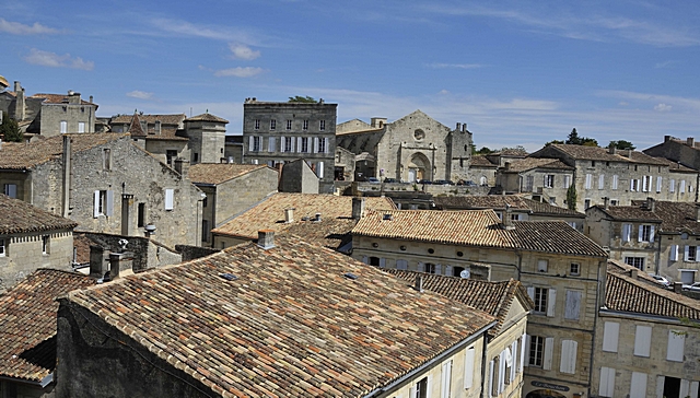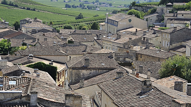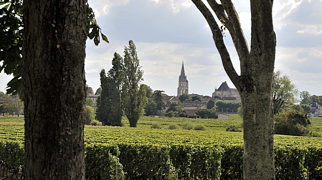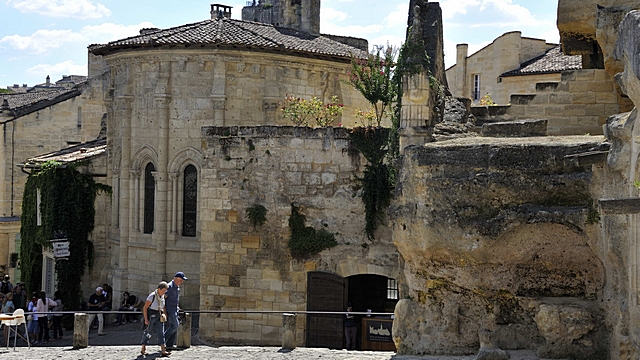 Vom Weingut aus ein Blick zur monolithische Kirche von Saint-Emi