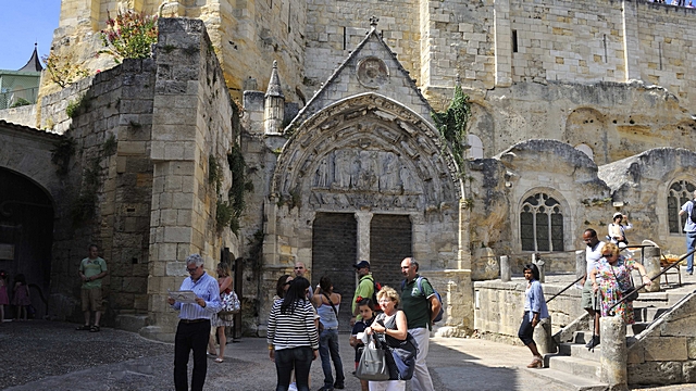 Ein Portal der Felsenkirche von Saint-Emilion .