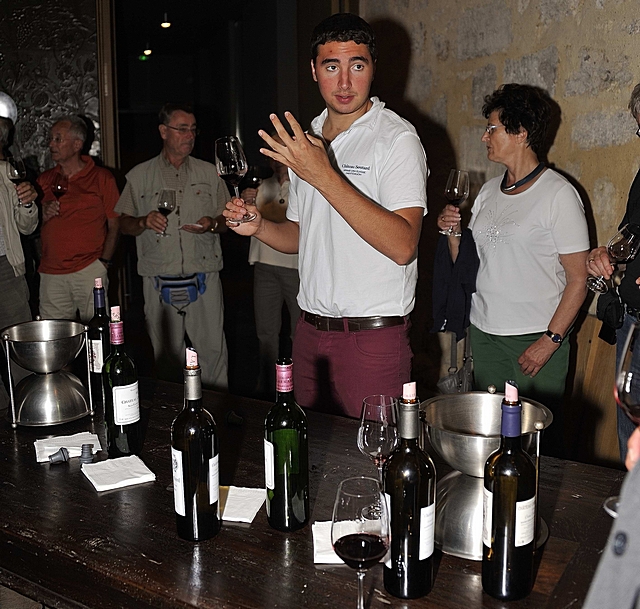 Weinverkostung im Weingut Chateau Soutrad Saint-Emilion.