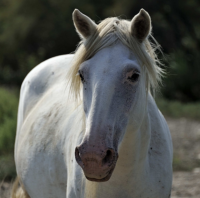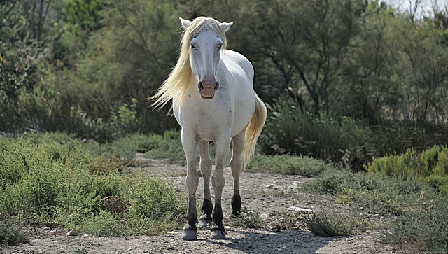 Die weißen Pferde in der Camargue.