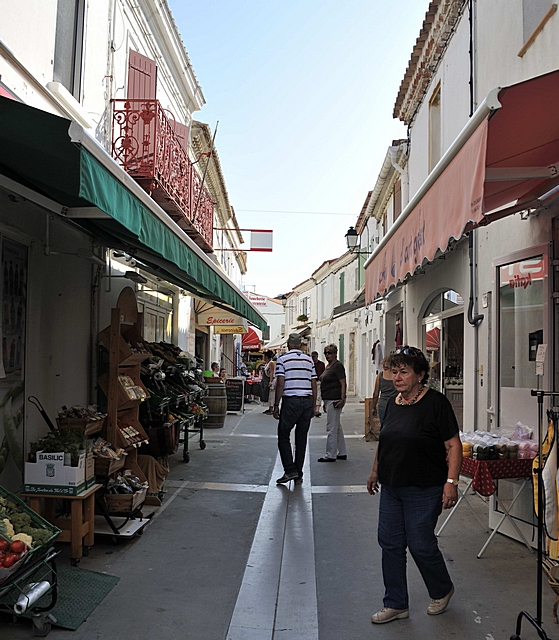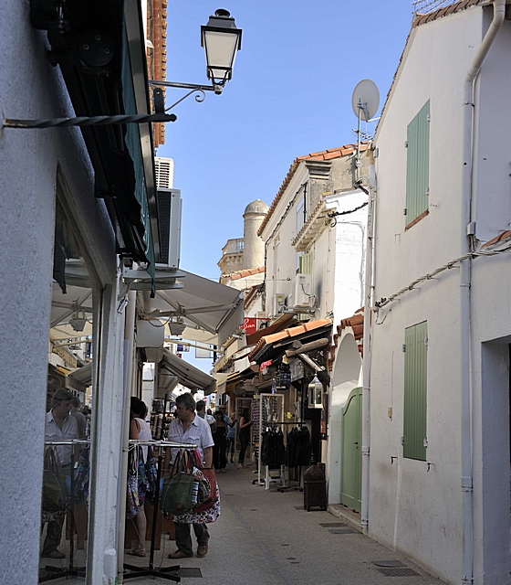 Enge Gassen in der Innenstadt von Aigues-Mortes.