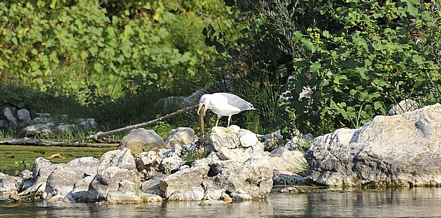 Eine Raubmöwe hat einen Aal im Gard gefangen.