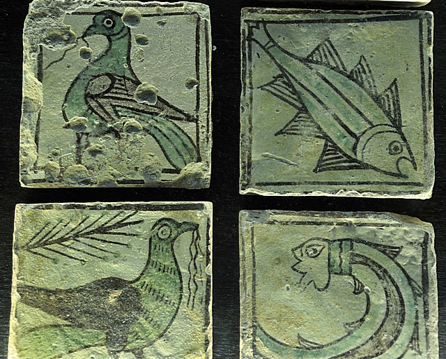Darstellung verschiedener Figuren auf Fliesen.