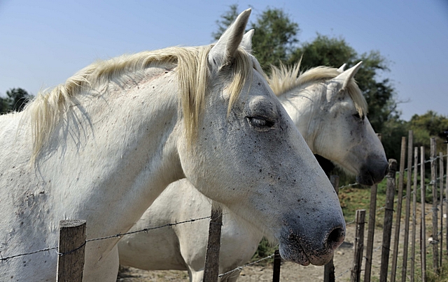 | Die weißen Pferde der Camargue. |