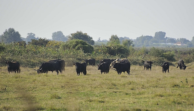 Die schwarzen Stiere der Camargue. |