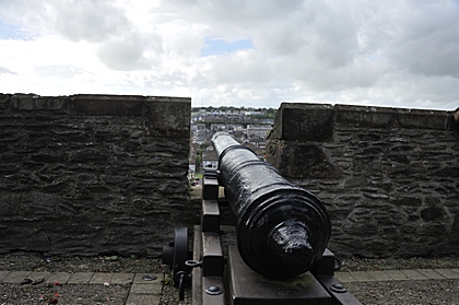 Kanonen stehen auf der Mauer von Derry. |