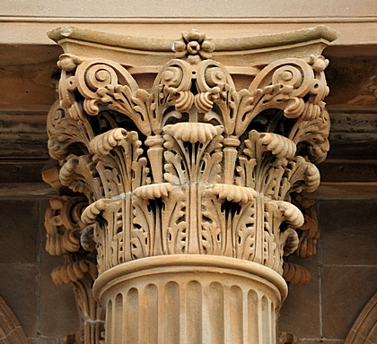 Eine Säule mit korinthischen Kapitellen an der Ersten Presbyterian Church. |