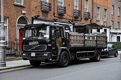 Dieser Bierwagen liefert das dunkle typisch irische Bier. |