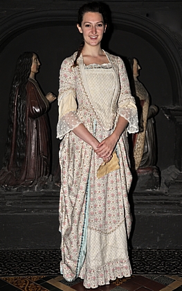Studentinnen schlüpfen in die Rolle von Damen aus dem Mittelalter. |