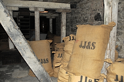 Bis zu 100 kg schwere Säcke werden in die Destillerie gebracht. |