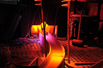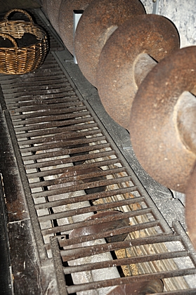 Die Gerste wird mithilfe eiserner Förderscheiben weiterbefördert. |