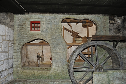 Wasserräder als Hauptantriebswerk für das Drehen der Mühlsteine. |