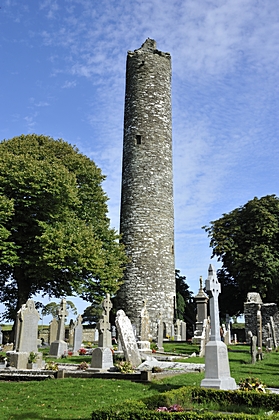 Viele Hochkreuze um den Rundturm von Monasterboice sind wahre Schätze aus der