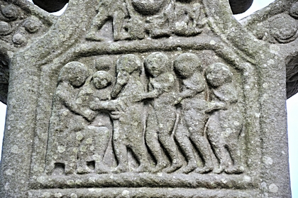 An den Hochkreuzen sind biblische Begebenheiten dargestellt. |