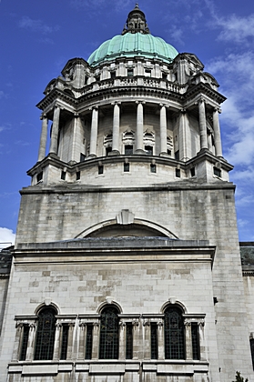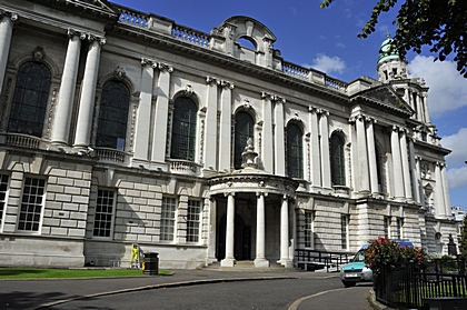 Ein Seiteneingang vom Rathaus in Belfast. |