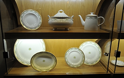 Die Speisen wurden im teueren Porzellan serviert. |