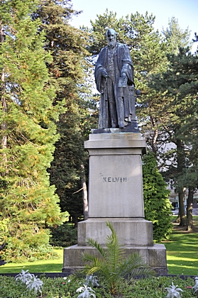 Im Park steht die Statue von Kelvin, den Begründer der