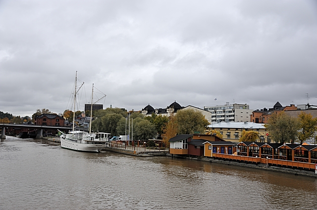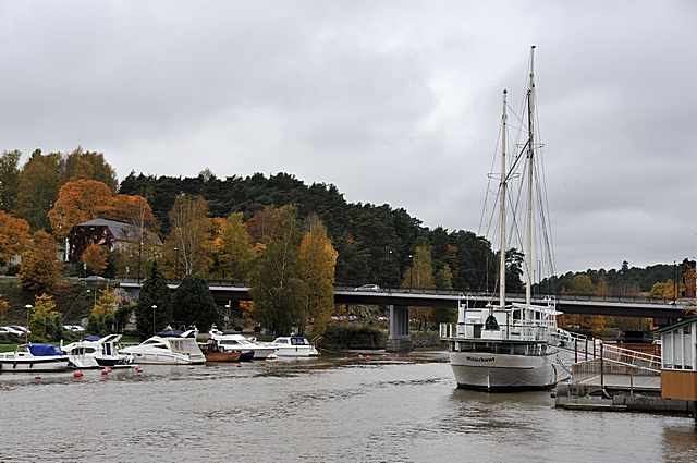 Eine Segelyacht liegt hier am Fluss Porvoonjoki vor Anker. |