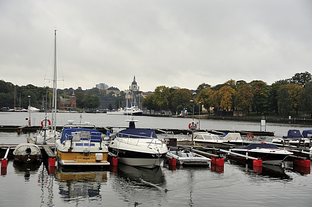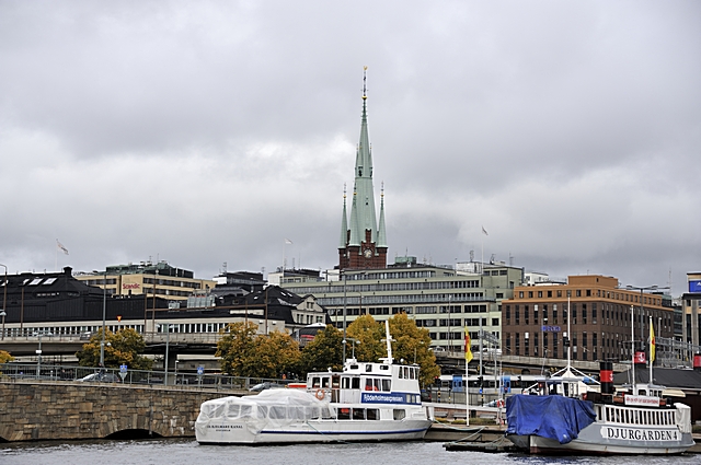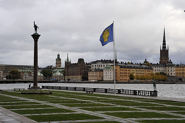 Blick vom Rathauspark nach Riddarholmen und Gamla Stan. |