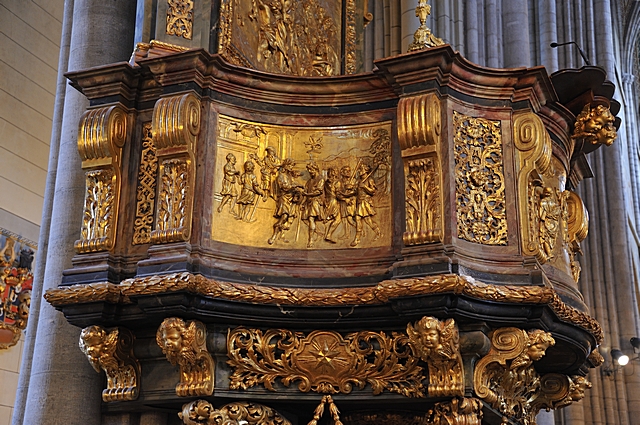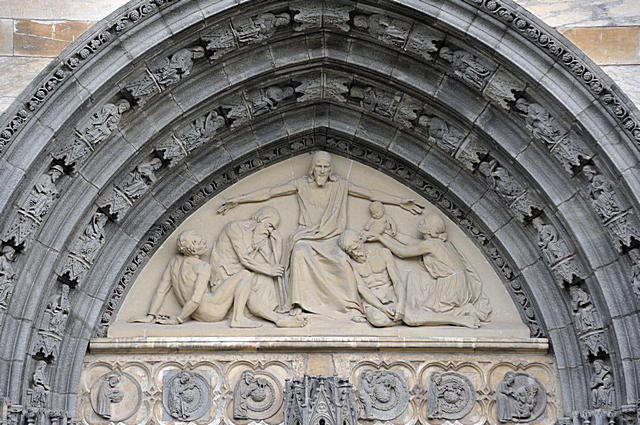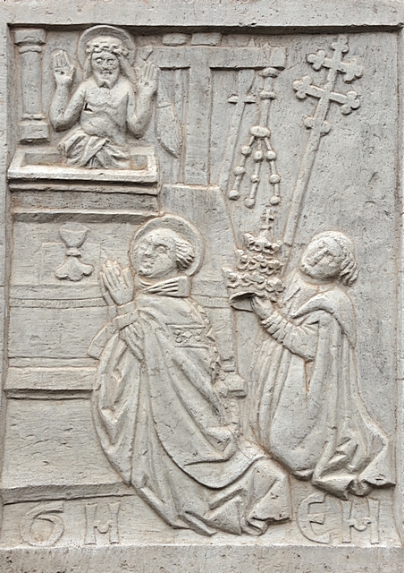 Dieses Reliefs erinnert an die Besitzer des Schlosses den Kartäu |