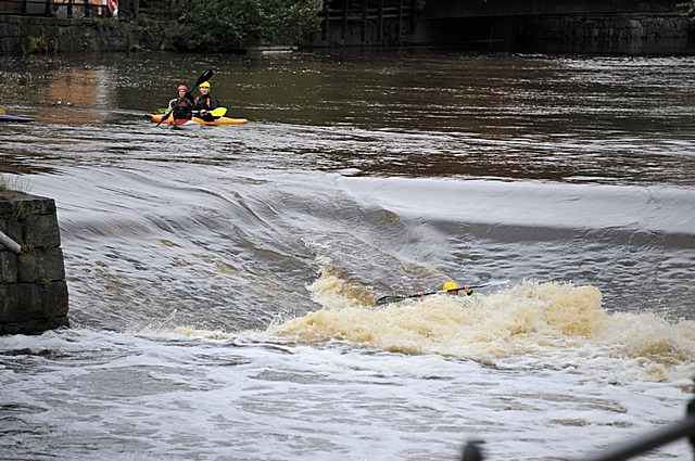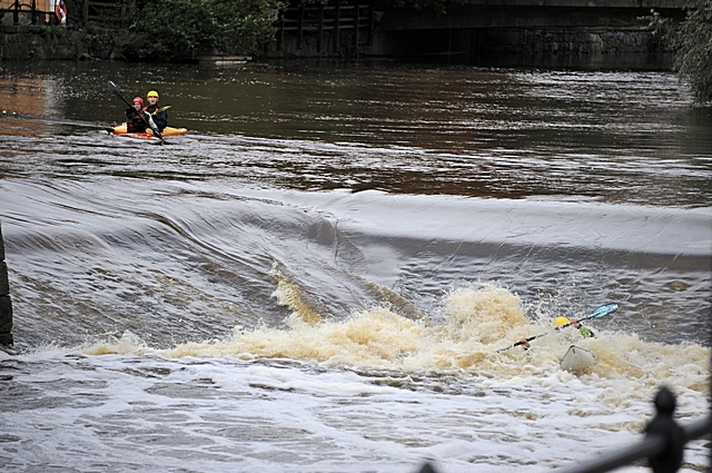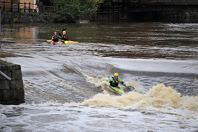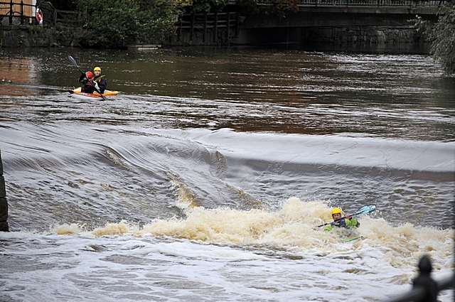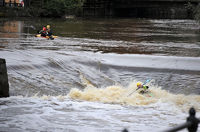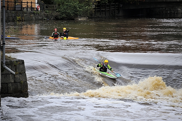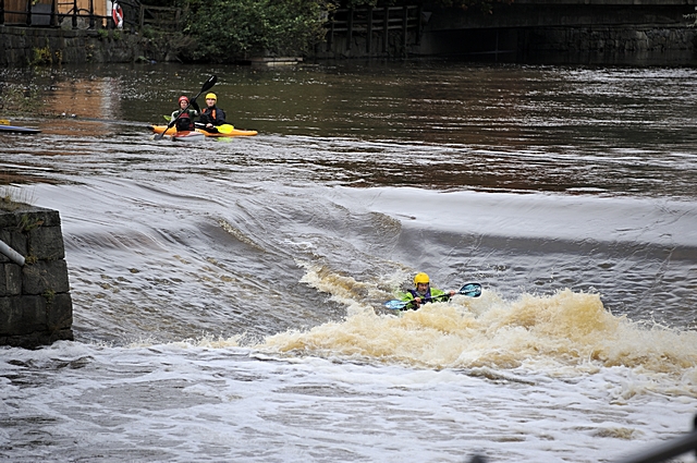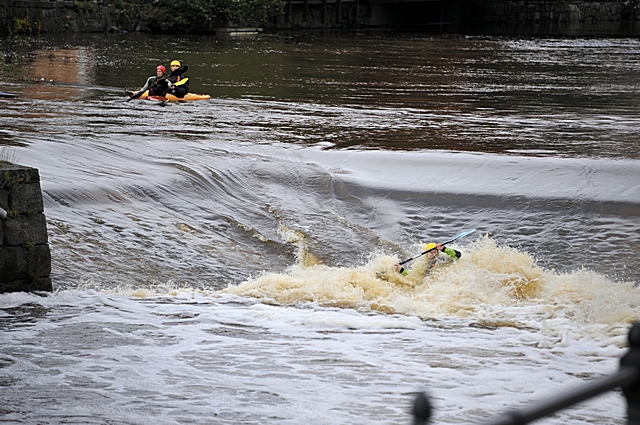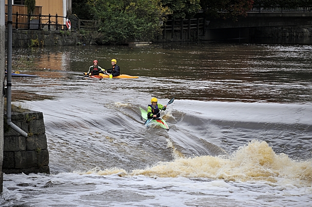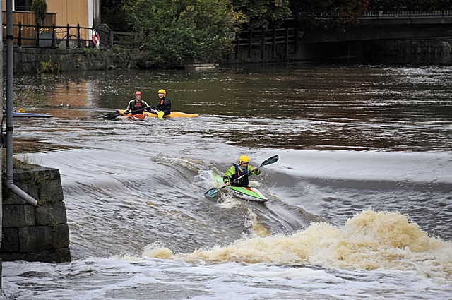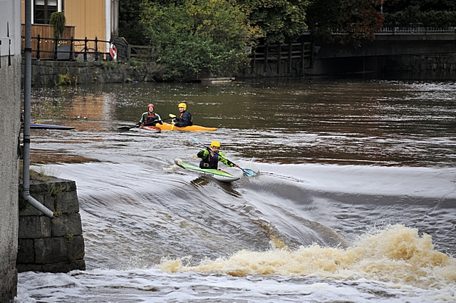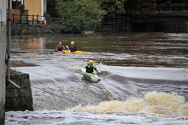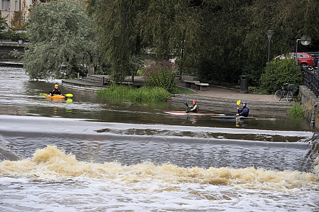 Kajakfahrer stellen ihren Mut im Fluss Fyrisan unter Beweis. |